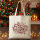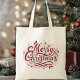 This festive Christmas tote bag features the words 'Merry Christmas' in red modern script and flourishes. Perfect for the Christmas Holiday season.