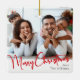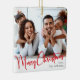 Celebrate the season with this festive red script Merry Christmas ceramic ornament featuring a touch of elegant charm. The chic design showcases a simple red-and-white color palette, evoking the cozy spirit of winter. Its modern and unique appeal and rustic wording create a perfect balance between seasonal and contemporary. In a casual and minimalist lettering style, the cheerful calligraphy adds a touch of flair. Share the joy and happiness of the holidays with this happy and stylish ornament!