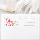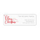 Celebrate the season with this festive red script Merry Christmas return address label featuring a touch of elegant charm. The chic design showcases a simple red-and-white color palette, evoking the cozy spirit of winter. Its modern and unique appeal and rustic wording create a perfect balance between seasonal and contemporary. In a casual and minimalist lettering style, the cheerful calligraphy adds a touch of flair. Share the joy and happiness of the holidays with this happy and stylish greeting!