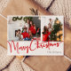 Festive Red Script Merry Christmas Two Photo Holiday Card