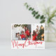 Festive Red Script Merry Christmas Two Photo Holiday Postcard