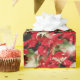 Poinsettias are most often associated with Christmas, and, surrounded here by cream coloured Yellow Snow poinsettias, the speckled leaves of this particular variety -- known as Shimmer Surprise Poinsettia -- add an even more festive touch to year-end holidays as a popular centerpiece.
