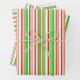 Festive Red, White, Green Christmas Style Lines Wrapping Paper Sheets