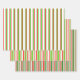 These fun Christmas inspired wrapping paper sheets designs feature stripes colored red, white, and green. Festive wrapping paper sheets like these might be used when preparing gifts being given when celebrating Christmas.