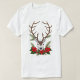 A festive tee shirt, a reindeer with bold antlers, pine greenery, and bright poinsettias. Perfect for holiday photos, cozy gatherings, and cheerful Christmas style.