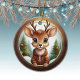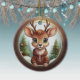 Festive Reindeer Xmas Wooden Frame Decoration. Rustic Holiday Deer Christmas tree ceramic ornament. Inside, a cute baby woodland wildlife animal, whimsical deer with antlers, in a cartoon graphic style, wearing a brown hoodie, is in the foreground. In the background, a winter wonderland snow scene, completing the holiday season charm of this unique doe decor. The two sided fawn design ensures that no matter how the hanging decor turns, it always looks festive and complete. 🦌🎄