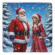 Santa Claus and Mrs. Claus stand amidst a picturesque snowy forest, evoking festive holiday joy and cheer in a serene winter setting.