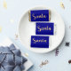 This elegant Christmas design features "Santa" script against deep, rich royal blue background.