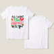 Celebrate the holiday season in style with this festive t-shirt featuring a playful design that captures the spirit of Christmas. A whimsical combination of a gingerbread man, vibrant bows, and cheerful snowflakes brings joy to gift-giving occasions and family gatherings.