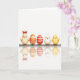 Designed with a sweet spring scene, the front shows five rounded little figures and decorations lined up on a thin, dark perch above a glossy reflection 🐰. Three chubby cartoon birds sit among two decorated eggs, and their mirrored shapes below make the row feel like a quiet moment shared between friends. On the left, a butter-yellow bird with rosy cheeks wears a small red bow, leaning slightly toward the group as if eager to be included. Next to it is an orange egg with white stripes and dotted accents, followed by a red egg with crisp white bands that echo the first. In the middle, a white bird faces forward with wide eyes, while a sunny-yellow bird beside it lifts one wing, as though offering a gentle wave to a close companion 🌷. The lighting stays soft and diffused, with smooth shading that gives each round shape a plush look, and there is no visible text on the front. Beneath the dark perch, the reflection repeats every bird and egg in paler tones, fading slightly as it drops downward.