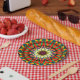 Paper plates with an original fractal star design in festive colors. Beautiful for a celebration or for Christmas.