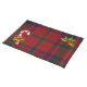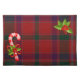 Lovely green and red Stewart tartan plaid place mat, with graphics of a sprig of holly and berries, in the upper left corner and a decorated candy cane, in the bottom left corner of the mat. Customize to add text. Pretty way to dress up your table for the holidays.