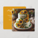BEAUTIFUL LAYER BIRTHDAY CAKE WITH WHITE ICING AND CHEERY SUNFLOWERS DECORATION ON THE FRONT OF THE CARD. COMPLETELY EDITABLE COPY ON THE BACK.