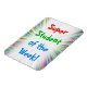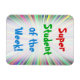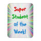 This festive, inspirational magnet design features the message "Super Student of the Week!". A magnet like this could perhaps be used to give positive motivation to a student. [~Z0000317]