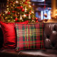 Festive Tartan 'Joy' Calligraphy Decorative Throw Pillow