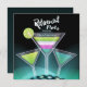 Simple and modern Retirement party invitation in aqua, and teal with fun colorful coctail glasses standing over star filled ball with spotlight. Text on front and back is ready for your customization.
