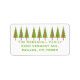 Modern holiday return address labels done in white, with graphics of green and pink Christmas trees, across the top. Personalize the green text with your information. Lovely finishing touch to your holiday cards and invitations.