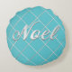 Festive Turquoise Blue & Silver 'Noel' Decorative Round Pillow
