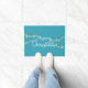 Festive holiday lights Merry Christmas door mat set on a turquoise blue background. Visit our shop to view a large assortment unique door mats.