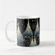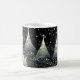 Fun addition to your coffee mug collection or as a holiday gift. Festive Twilight Christmas trees with intertwining whimsical swirls and twinkling distant stars. Dark background with emerald, green highlights. Showcases vibrant Christmas trees reaching towards the night sky. The colors are swirled around the tree creating a sense of movement. There are stars scattered throughout the sky against a dark backdrop giving Festive Twilight Christmas Trees an ethereal quality.