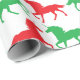 Quality wrapping paper decorated in a motif of green and red unicorns. The perfect wrapping paper for anyone needing to add some charming unicorns to their holiday gift giving.