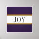 Festive "ribbon candy" pinstripes highlight beautiful "JOY" in big elegant typography filling a snowy white center stripe. Wide, bold deep purple color-filled stripes above and below complete the festive modern composition. The stripe colors in this design can be customized by editing the design. The text can also be personalized.