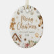 Lightweight, smooth, pure white ornament with nice sheen. Perfect size to be seen from across the room ... and to attract closer inspection! Price was great for ordering enough for the whole family! Clear, bold black design just as requested. Matches the order exactly. Just so nice!