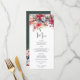 Elegant festive wedding Menu featuring winter florals - poinsettias, in rich shades of red, burgundy, creams and ivory, festive berries, lush greenery and accents of faux gold glitter dusting. Customize your own wedding menu using the template provided.