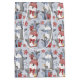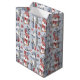 A festive and fun pattern with dancing penguins in winter hats and holiday gifts.