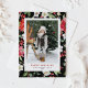 Festive Winter Flowers Pattern Black Photo Holiday Postcard