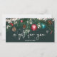 Modern logo gift certificate with festive Christmas lights green pine branches snow with cute illustration of glitter Christmas ball ornament, green watercolor pine branches, mistletoe, pine cones, string fairy lights on editable dark green background.. Get ready for the shopping season and Christmas. Perfect gift for anyone! Add your logo.