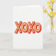 This card features the big text “XOXO” right in the center on a white background. Each letter is a warm orange with a red outline, and a soft shadow makes the word look slightly raised. Small round dots run across the face of every letter, like the bulbs you’d see on an old marquee sign. The letters look cheerful and affectionate, almost like they’re glowing even though the background stays plain and bright. The “XOXO” text is in thick, rounded lettering, so it’s easy to read and feels friendly. It’s a simple way to say hugs and kisses without needing a long message, which can feel really meaningful for a partner or a close friend 🥰. The bright colors and centered layout keep the focus on love and closeness, making it easy to give with confidence ❤️.