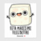 Feta Makes Me Fell Betta Funny Cheese Pun features a cute block of feta cheese declaring that feta makes him feel better . Perfect Puns gift for family and friends who love cute feta cheese puns.