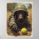 In full camo and ready for action, the Field Fetch Specialist dives behind cover clutching a grenade and his favorite slobbery tennis ball. With eyes locked on the prize, this loyal lab balances fierce focus and playful spirit. Whether he’s storming the backyard or defending his treat stash, this pup is always mission-ready. A perfect blend of humor and canine courage for any dog-loving warrior’s wall.