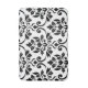 Vintage influenced leafy baroque style damask surface pattern design in black leaf and flourish detail on a white background.