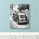 Canvas print of a vintage old small FIAT 500 car in a street in a city in Italy in stylish black and white.