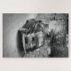 Photo jigsaw puzzle with a vintage old small FIAT 500 car in a street in a city in Italy in stylish black and white.
