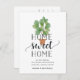 Charming and modern moving announcement postcards let friends and family know about your new home sweet home! Design features a vibrant green watercolor fiddle leaf fig houseplant illustration with "home sweet home" in soft black script and block typography. Use the template fields to add your custom intro, new address and names. Information repeats on the reverse side with space for recipient addressing.