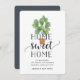 Charming and modern moving announcements let friends and family know about your new home sweet home! Design features a vibrant green watercolor fiddle leaf fig houseplant illustration with "home sweet home" in soft black script and block typography. Use the template fields to add your custom intro, new address and names.