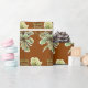 Fiddleleaf fig potted houseplant pattern wrapping paper. Chocolate brown color with green tree containing big leaves in large pattern. Choose matte or glossy paper in the length needed. This is heavy-duty, quality gift wrap and could be used to wrap a housewarming gift.
