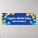 Personalize this banner for a fidget spinner theme party. Many elements of this banner can be customized. The background color is blue, however you change that by clicking on the Customize button. Each fidget spinner can be moved around, made smaller or larger. Click on the Customize button to go into Edit Mode.