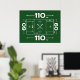 Men's lacrosse field. Diagram of men's lacrosse field dimensions with the various yardage measurements. Lacrosse field measurements poster. White design on grass green background.