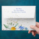 So fresh and lovely, this wedding invitation envelope is part of the Field Flowers Bouquet Wedding Suite cards created by Simply Farmhouse Press. The soft blue, lavender, and yellow of the daisies, violets, and lavender are complimented with soft greenery. Simple, yet elegant.