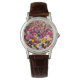 I like the illustrative watch with the lady on it. It is a great reminder that I am blessed and it has a very sturdy leather band. The colors are true and vibrant. Love the color of the Leather also. Very nice.