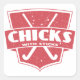 Retro shield style design, with crossed field hockey sticks and the phrase Chicks With Sticks. Fun design for field hockey players and fans! Items can be customized with your own text. Great for field hockey t-shirts, hoodies, hats, mugs, pins, stickers, keychains, magnets and much more!