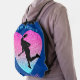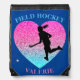 Girls Field Hockey drawstring backpack with player chasing after a realistic looking field hockey ball, made special with the name of your daughter (or any other special girl in your life)!