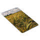 This fine art flexible magnet presents a scenic summer landscape of a field of ripening gold, brown and yellow grain, almost ready to harvest. The farm buildings and barns are way in the distance. The stalks are blowing in the wind to form a lovely abstract pattern.