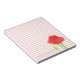 A custom botanical lined notepad a field poppy in bright red hand painted with watercolor on a white background. In Floriography, Language of Flowers, the field poppy represents "you are always in my memory" and sacrifice. It is also a symbol of remembrance for soldiers who lost their lives in war. You can edit or remove the text to fit your needs.