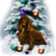 Wonderful Christmas art with an adorable Field Spaniel sitting in front of a woodland tree in the forest.