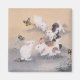 Rabbits jump on the grass, playing with dancing butterflies. Various wild rabbits with or without black or brown spots hop in the soil-brown hues, showing the intimacy of animals and nature. Butterflies with right colors and sky-blue flowers form the picture a more bright and vivid landscape.